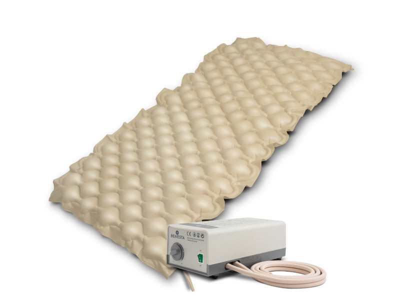 Colchón de compresión alterna de 5 niveles de profundidad, adaptable a cualquier cama de tamaño individual. Con la certificación CE y la FD y resistente a bacterias y olores.